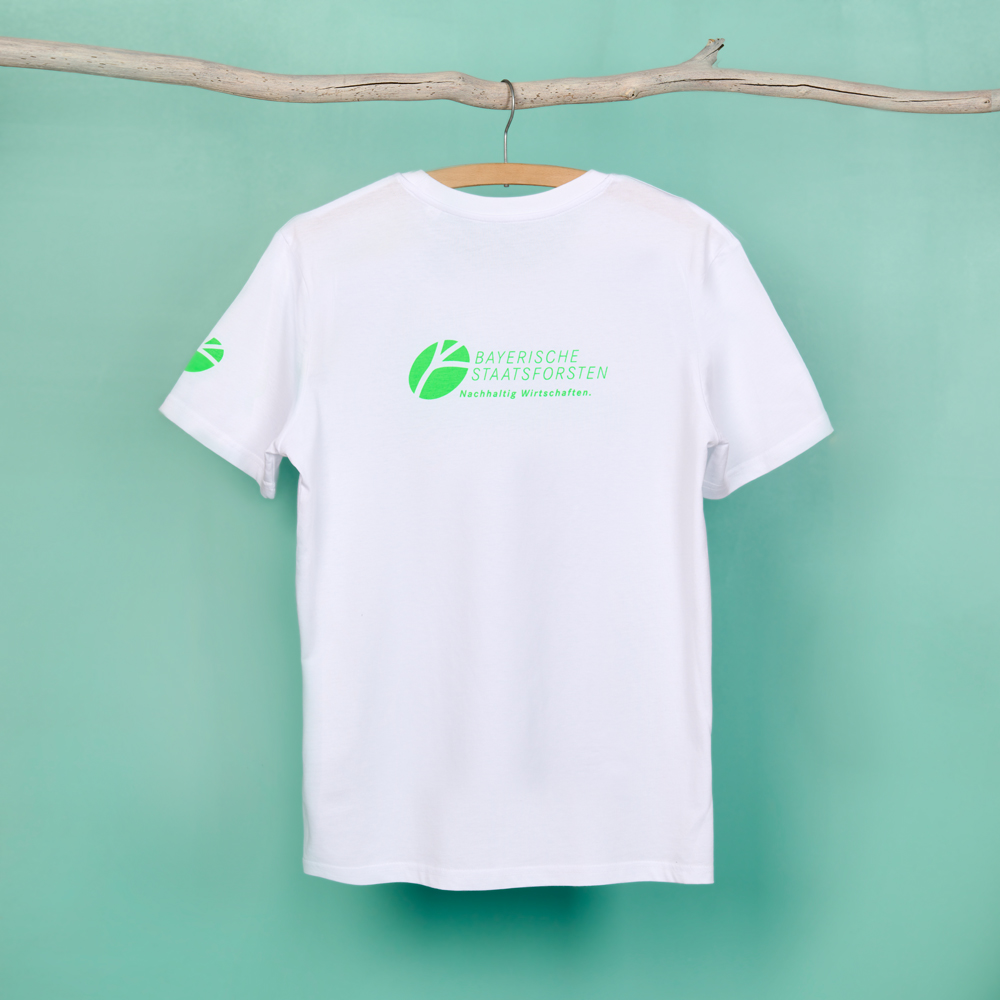 - Logo und Schriftzug: Bayerische Staatsforsten (Rückseite), BaySF-Logo (linker Ärmel)